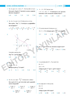 1. f(x) = 3x, g(x) = 2x + 3, h(x) = x - 2 fonksiyonları veriliyor. 6. A = { 3, 1,0,2−− } olmak üzere