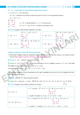 ̚ Çözüm: x + 3x + 2 = (x ) + 3x + 2 şeklinde düzenleyip x yerine a değişkeni yazılırsa ⇒ a + 3a + 2 elde edilir.
