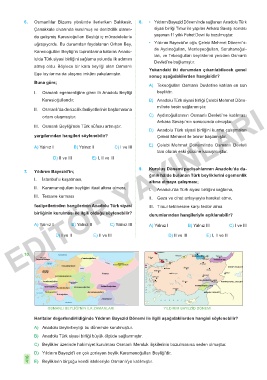 6. Osmanlılar Bizans yönünde ilerlerken Balıkesir, 8. • Yıldırım Bayezid Dönemi’nde sağlanan Anadolu Türk
