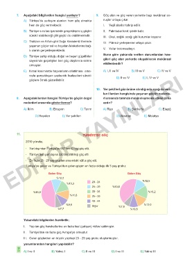 7. Aşağıdaki bilgilerden hangisi yanlıştır? 9. Göç alan ve göç veren yerlerde bazı mekânsal so-