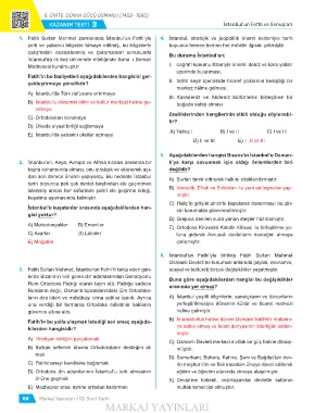 KAZANIM TESTİ 3 stanbul’un Fethi ve Sonuçlar
