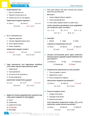 Page 72 - 11. SINIF BİYOLOJİ FAVORİ KAZANIM ODAKLI VE BECERİ TEMELLİ SORU BANKASI
