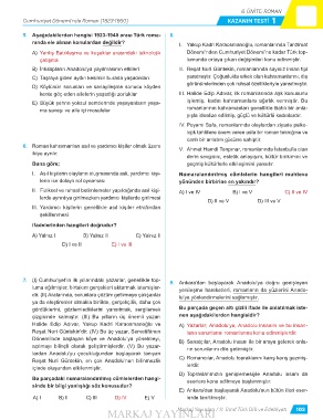 7. (I) Cumhuriyet’in ilk yıllarındaki yazarlar, genellikle top- 9. Ankara’dan başlayarak Anadolu’ya doğru genişleyen