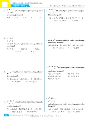 KAZANIM TESTİ 5 İkinci Dereceden Bir Bilinmeyenli Eşitsizlik Sistemi