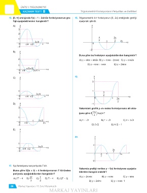 16. [0, π] aralığında f(x) = 1 + 2sin2x fonksiyonunun gra- 18. Trigonometrik bir fonksiyonun [0, 2p] aralığında grafiği