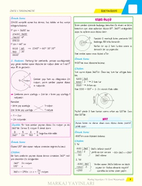 360° 2p radyan -800 360 Verilen açının 360'a bölünen en küçük