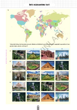 Yukarıdaki dünya haritasında numaralı ülkelere ait kültürel unsurların görselleri aşağıdaki seçeneklerin han-