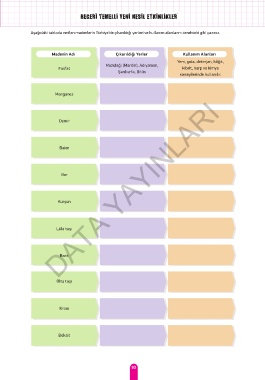 A Aşağıdaki tabloda verilen madenlerin Türkiye’de çıkarıldığı yerleri ve kullanım alanlarını örnekteki gibi yazınız.
