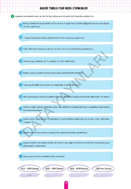 D Aşağıda numaralandırılarak verilen Türkiye nüfusuna ait bilgileri ilgili dönemlerle eşleştiriniz.
