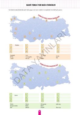 E Haritalarda numaralandırılan şehirlerde yaygın olan tarım ürünlerini ve madenleri örnekteki gibi yazınız.