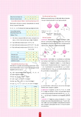 Baş Kuantum Sayısı (n) 1 2 3 4 5 ... Spin Kuantum Sayısı (m )