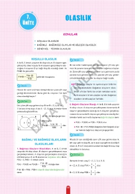 3 6 ● P(A) ≠ P(A|B) ve P(B) ≠ P(B|A) olur.