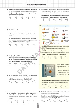16 A = {0, 1, 2, 3, 4} kümesinin elemanlarıyla iki basa- ağırlıklı bir yiyecek seçtiği bilindiğine göre Sevgi