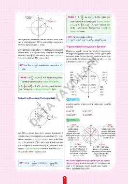 NOT: sec = ve cosec = 'dır. den Yazılması: Analitik düzlemin birinci bölgesinde