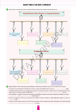 A Klasik üretim ile endüstriyel üretim arasındaki farkları boş bırakılan alanlara örnekteki gibi yazınız.
