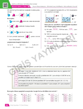 BECERİ TEMELLİ TEST 10 Suyun Otoiyonizasyonu - Brönsted Lowry Asit/Bazları - Asit ve Bazların Kuvveti