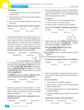 KAZANIM TESTİ 1 İhtilaller Çağı