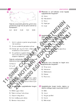 Yukarıda numaralarla gösterilen yerlerin han- D) Doğal gaz