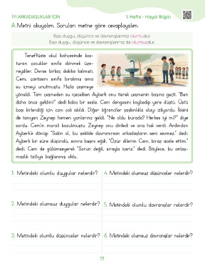 3. Metindeki olumlu düşünceler nelerdir? 6. Metindeki olumsuz davranışlar nelerdir?
