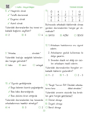 1. Hafta - Hayat Bilgisi TEKRAR EDELİM