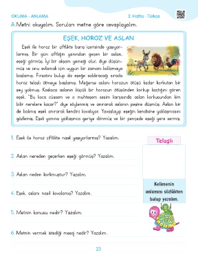 2. Aslan nereden geçerken eşeği görmüş? Yazalım.