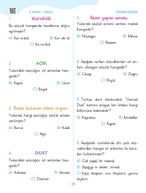 2. AÇIK 6. Aşağıda verilen sözcüklerden zıt an-