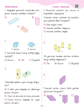 1. Aşağıdaki geometrik cisimlerden han- 4. Geometrik cisimlerin yön, konum ve