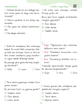 Page 54 - 3. Sınıf Biçimlendirici Değerlendirme Hafta Hafta Etkinlikler-Fasikül 1