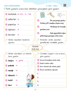 TEMA DEĞERLENDİRME 4. Hafta - Türkçe