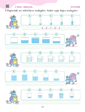 B. Kaplardaki sıvı miktarlarını inceleyelim. Azdan çoğa doğru sıralayalım.