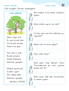 A. Şiiri okuyalım. Soruları cevaplayalım.