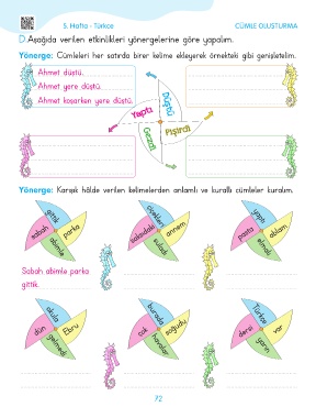 Yönerge: Karışık hâlde verilen kelimelerden anlamlı ve kurallı cümleler kuralım.