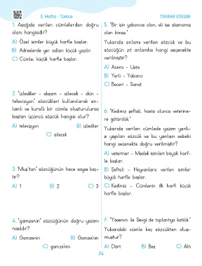 Page 75 - 3. Sınıf Biçimlendirici Değerlendirme Hafta Hafta Etkinlikler-Fasikül 1