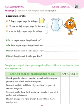 Page 78 - 3. Sınıf Biçimlendirici Değerlendirme Hafta Hafta Etkinlikler-Fasikül 1