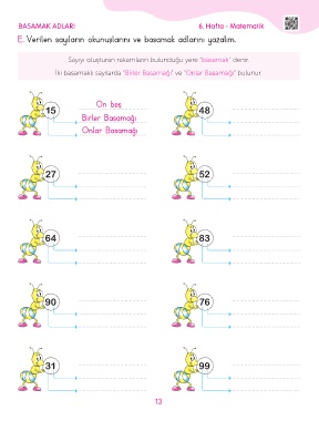 E. Verilen sayıların okunuşlarını ve basamak adlarını yazalım.