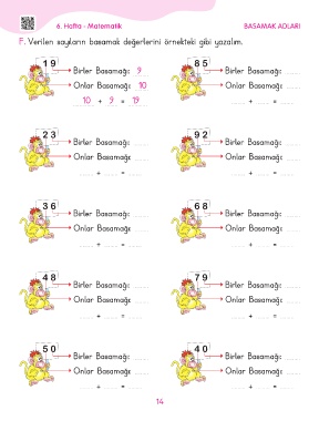 F. Verilen sayıların basamak değerlerini örnekteki gibi yazalım.