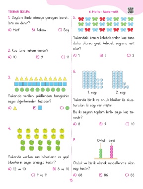biberlerin sayısı sırasıyla kaçtır? Onluk ve birlik olarak modellenmiş olan