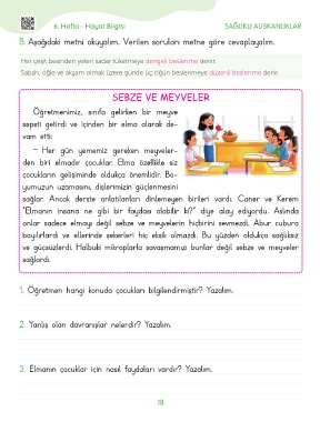 B. Aşağıdaki metni okuyalım. Verilen soruları metne göre cevaplayalım.