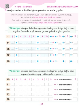 9. Hafta - Matematik BİRER İLERİYE VE GERİYE RİTMİK SAYMA