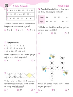 9. 12. Aşağıdaki tabloda birer ve ikişer geri-