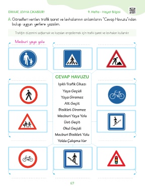 A. Görselleri verilen trafik işaret ve levhalarının anlamlarını “Cevap Havuzu”ndan