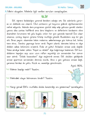 A. Metni okuyalım. Metinle ilgili verilen soruları cevaplayalım.