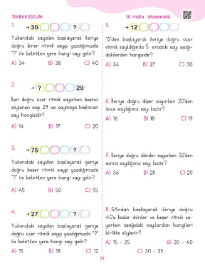 doğru birer ritmik sayıp yazdığımızda ritmik sayıldığında 5. sıradaki sayı aşağı-