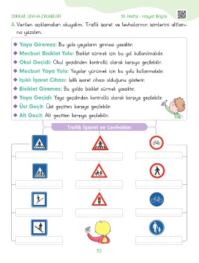 A. Verilen açıklamaları okuyalım. Trafik işaret ve levhalarının isimlerini altları-