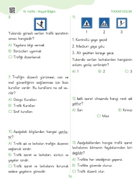 A) Trafik ışık ve levhaları trafiğin düzenini 13. Aşağıdakilerden hangisi trafik işaret