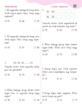 sayan Can, 5. saymada hangi sayıyı 8. İleriye doğru ikişer sayarken 13’ten