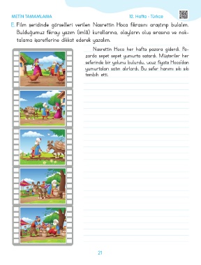 E. Film şeridinde görselleri verilen Nasrettin Hoca fıkrasını araştırıp bulalım.