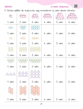 E. Verilen şekiller ile oluşturulan sayı örüntülerini üç adım devam ettirelim.