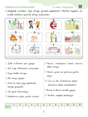 A. Aşağıdaki cümleleri, ilgili olduğu görselle eşleştirelim. Harfleri sayıların al-