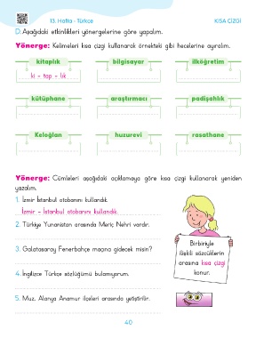 Yönerge: Cümleleri aşağıdaki açıklamaya göre kısa çizgi kullanarak yeniden